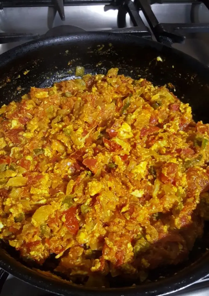 آنقدر تفت میدهیم تا آب گوجه ها کاملا خشک شود و تخم کاملا درون گوجه ها پخته شود و آبی ها از گوجه ها باقی نمانده باشد و به روغن بنشیند